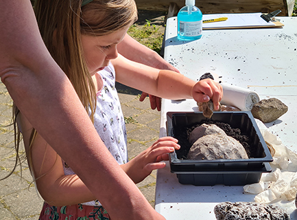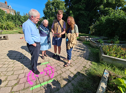 Participants making clay mountains and sowing grass seeds, Station Master's Garden, Whitley Bay (June 2021) |